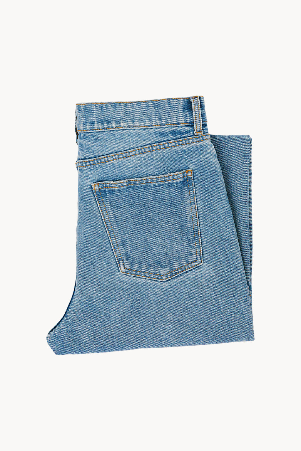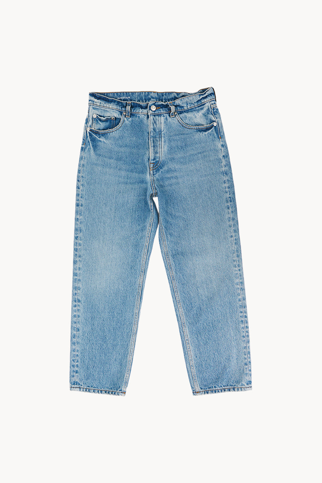 Low rise jeans in cotton denim, relaxed fit with traditional 5 pocket styling.