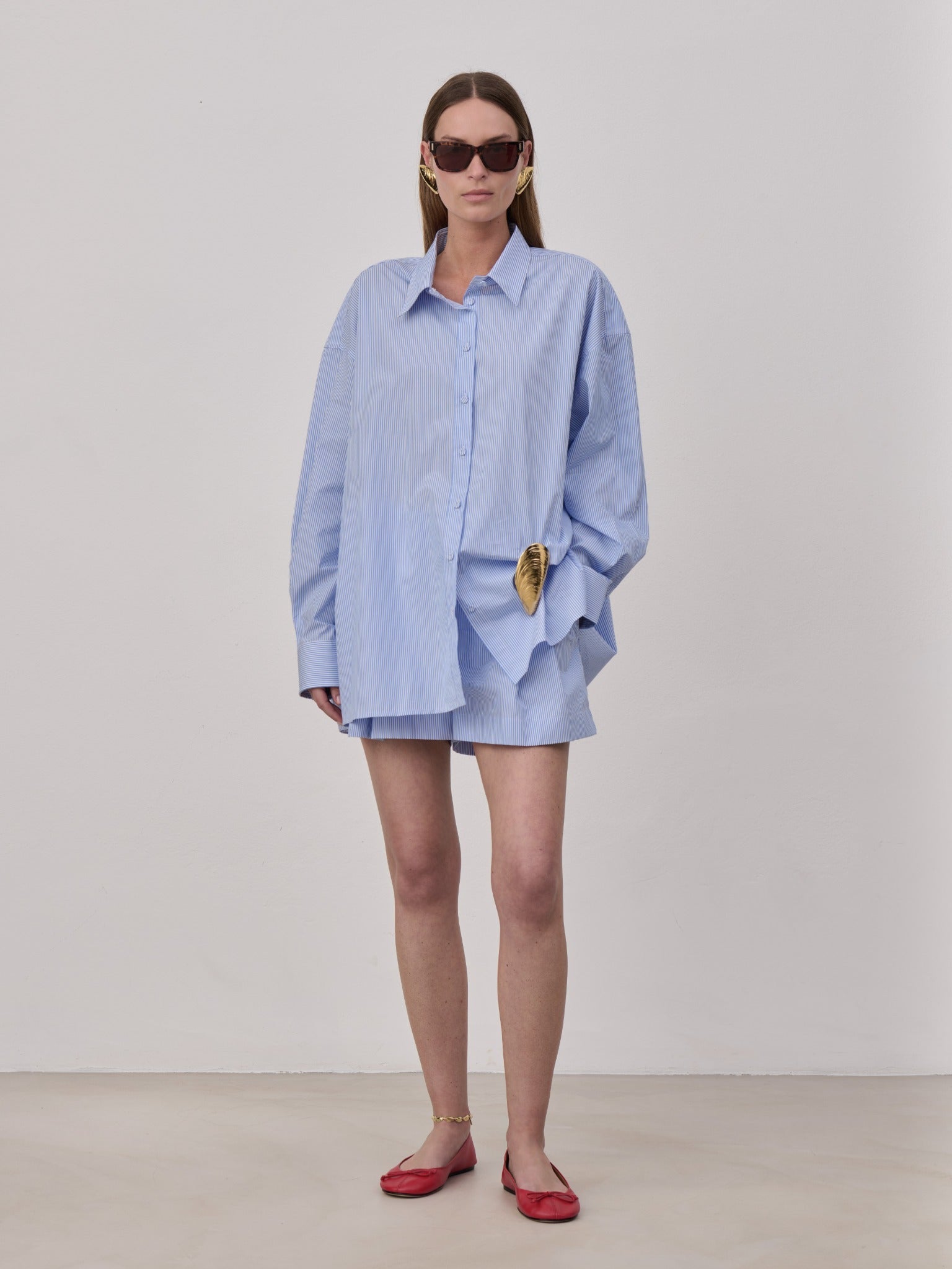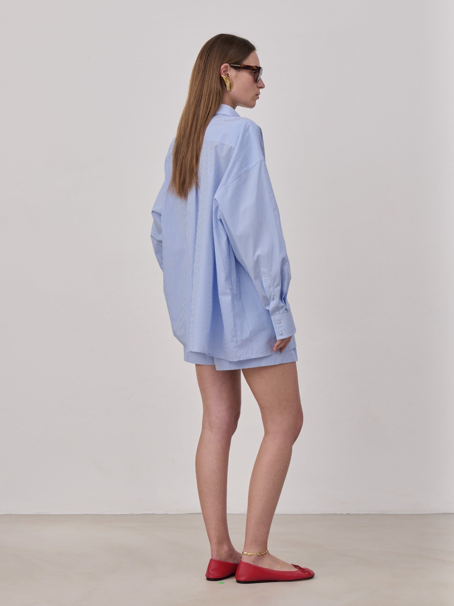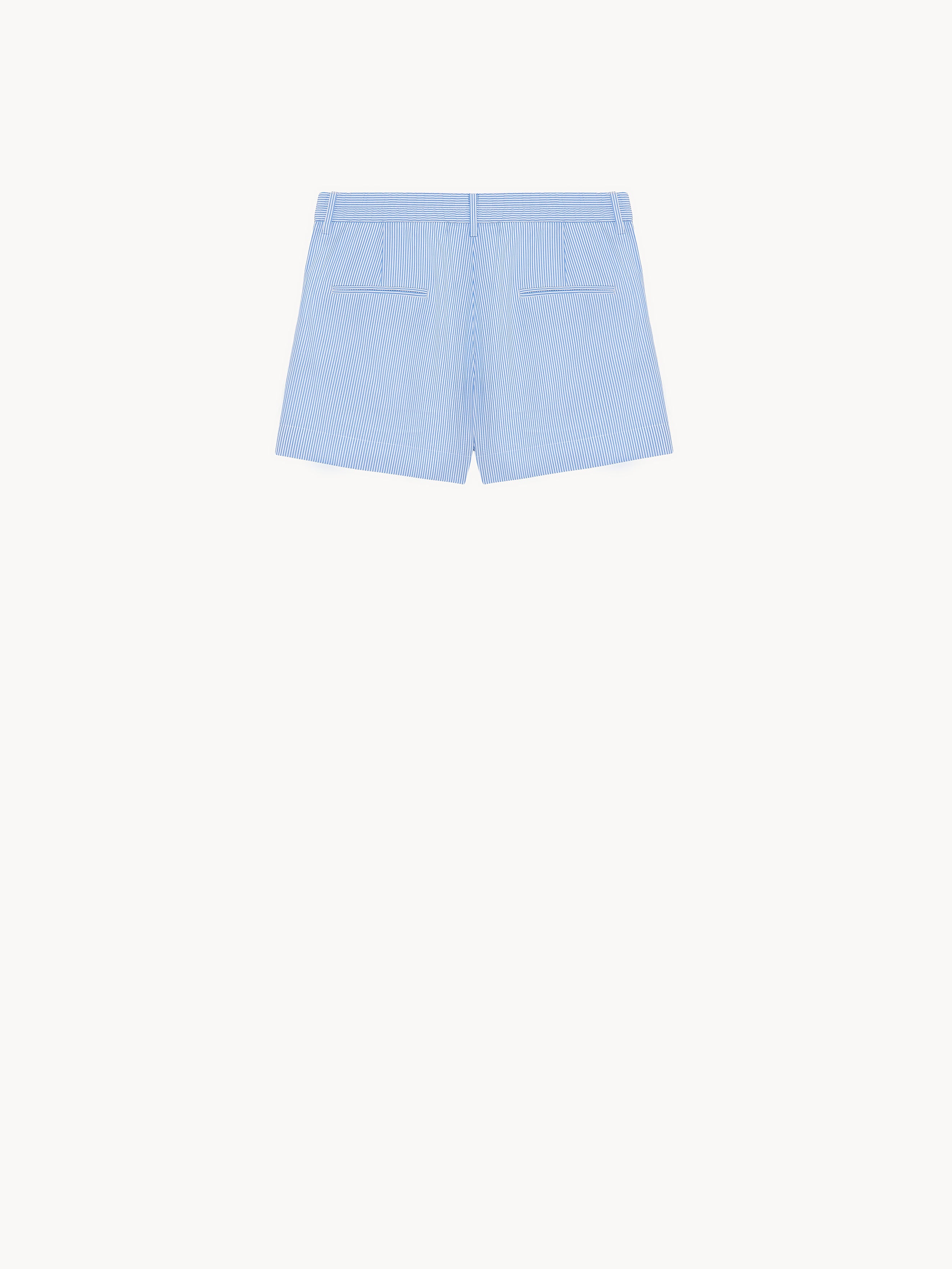 Low rise double pleated short pant in cotton popeline, side seam pockets, back besome pocket and elasticated waistband on the back. Inside horn button. Unlined. Made in Italy