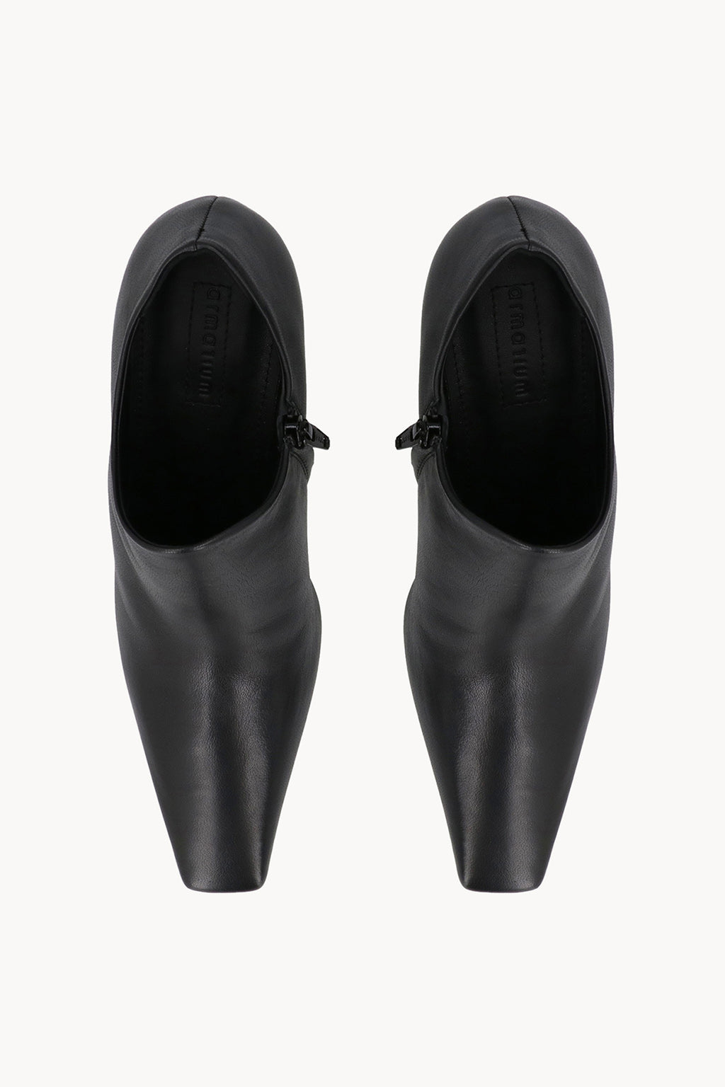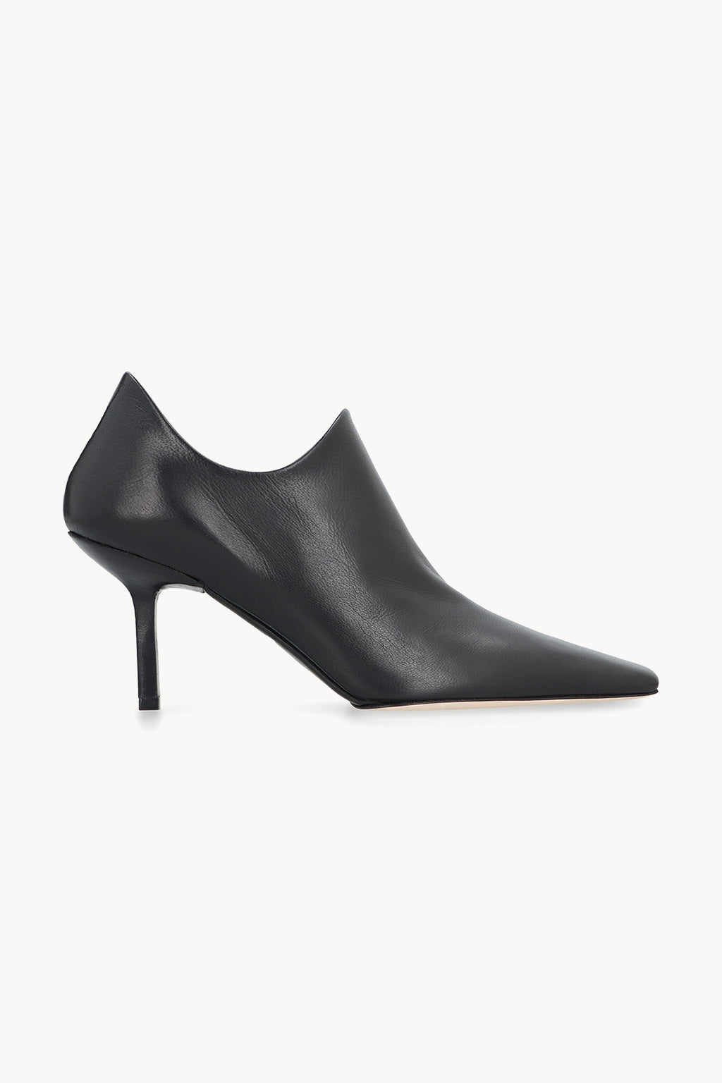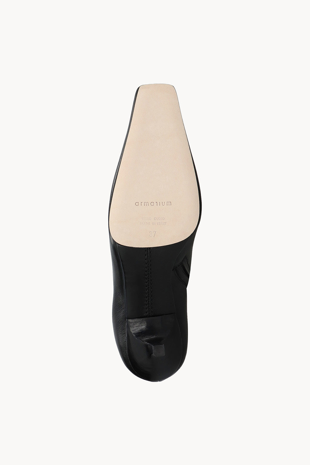Soft nappa pump shoe, characterized by soft lines which gently embrace the foot. A practical inner zipper makes it easy-to-wear. The 75 mm high heel is realized in black leather, providing extraordinary elegance and stability. The sole is divided into two parts; the ball of the foot is covered with a natural pumice leather island sole, while the arch of the foot is covered with the same material as the upper, enriched with a central hand stitch which adds a touch of craftsmanship and refinement to the overall design.