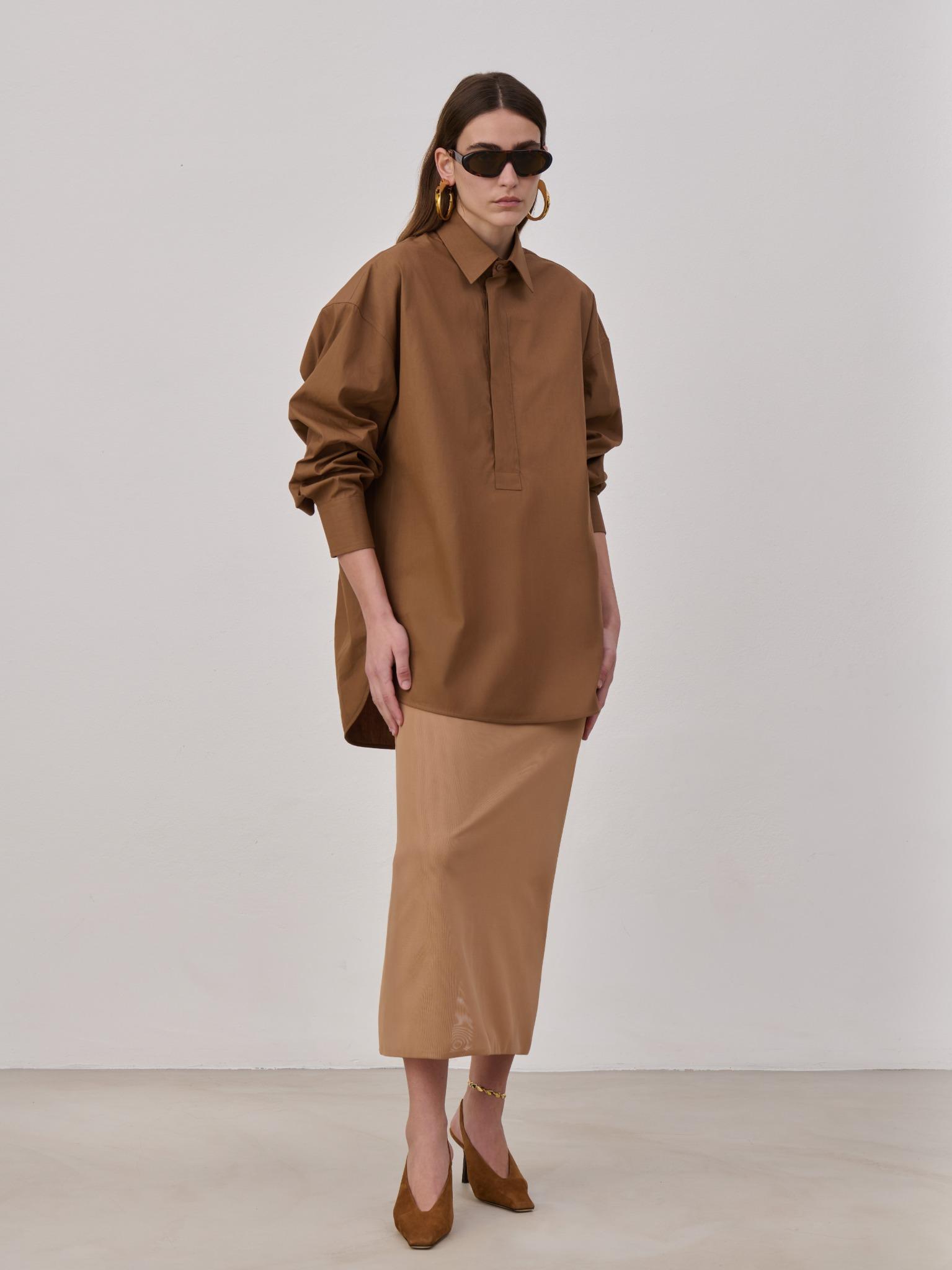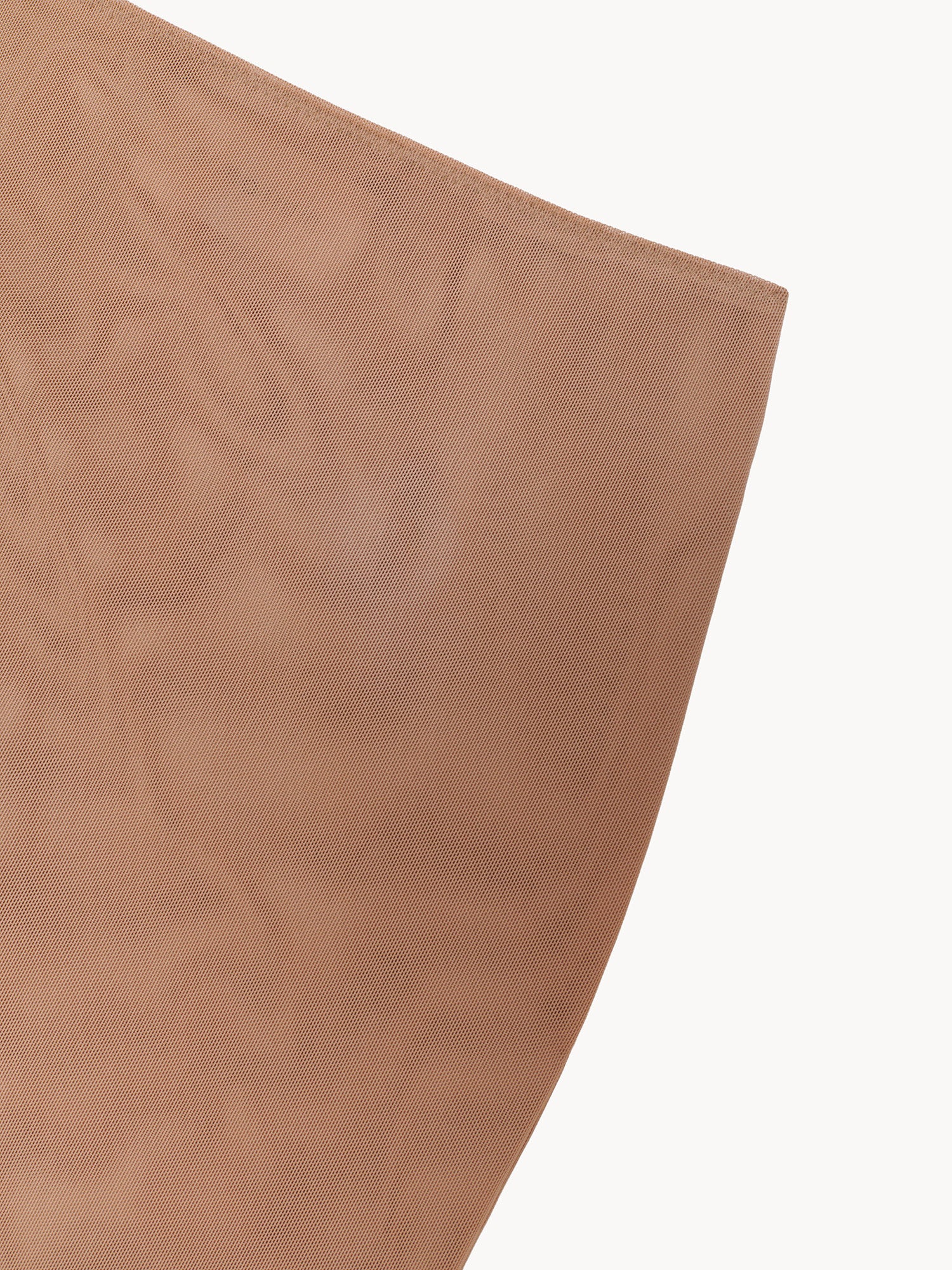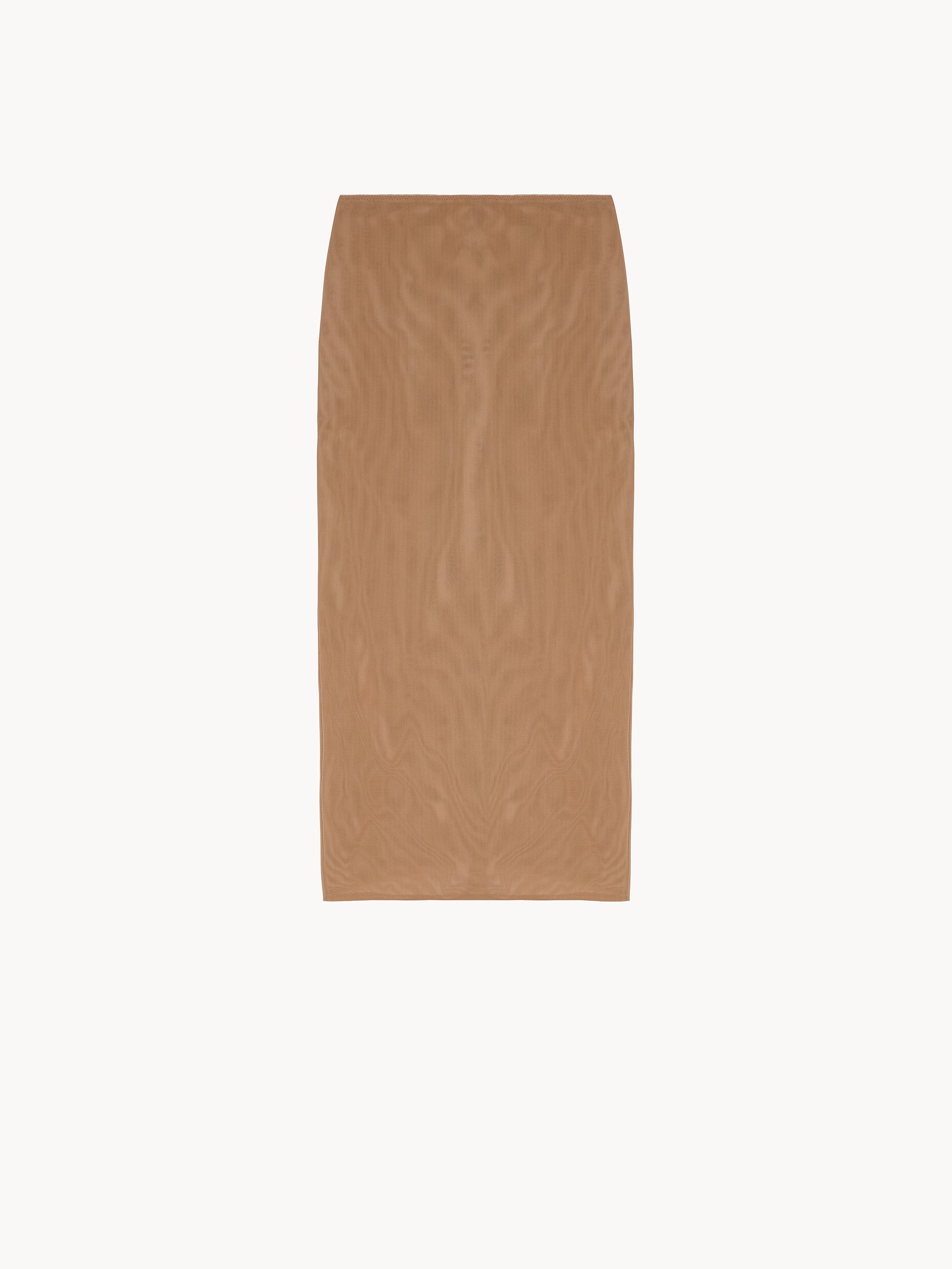 High waisted midi pencil skirt in mesh with back slit and invisible back zipper closure. Made in Italy.