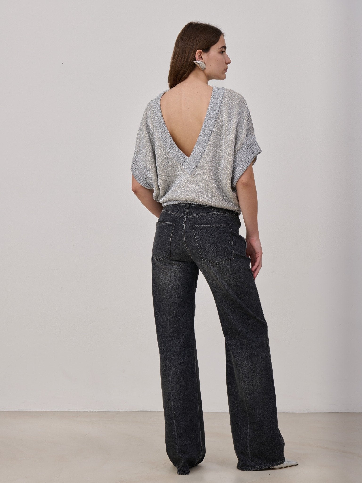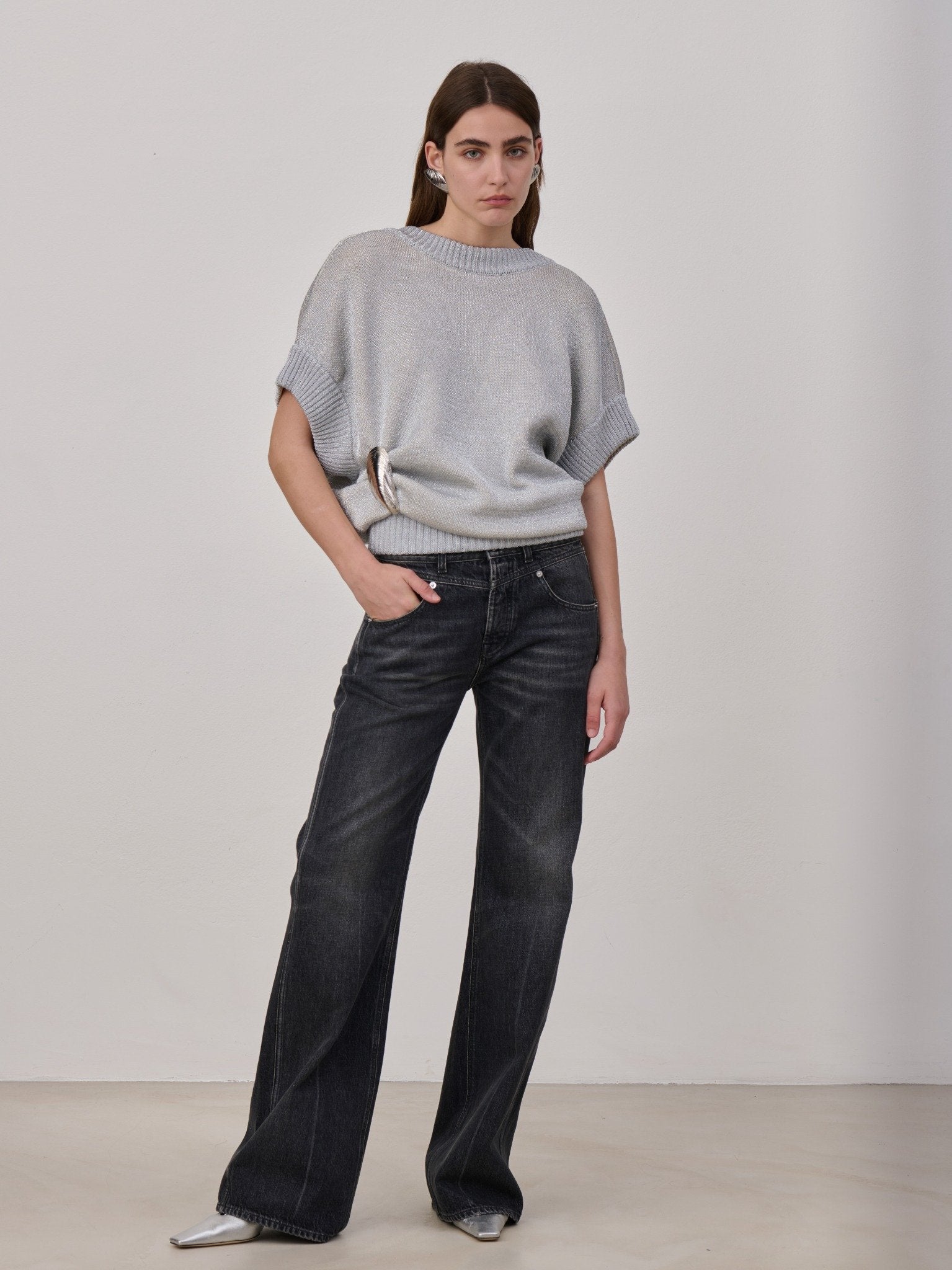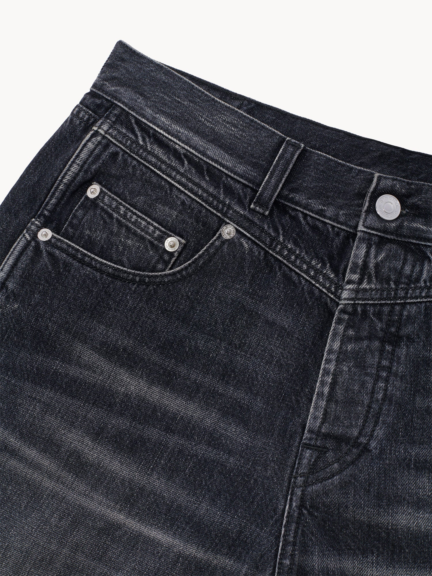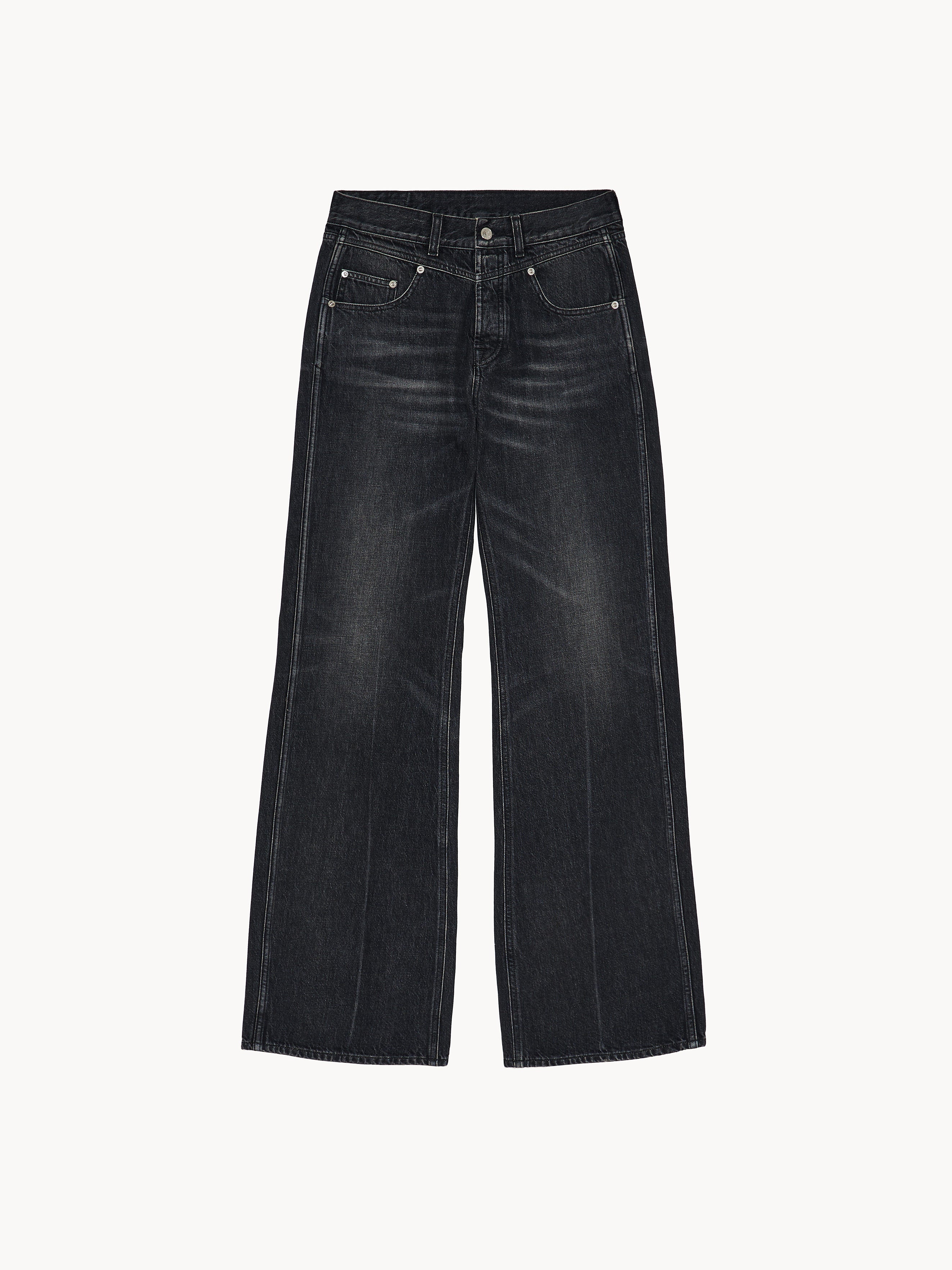 Pant in vintage washed denim with a loose fit. Characterized by a double yoke that continues onto the front, an exposed side seam for added structure, a matching denim back patch detail and a classic 5 pocket styling. 100% Cotton, 13 oz. Metal buttons. Made in Italy.