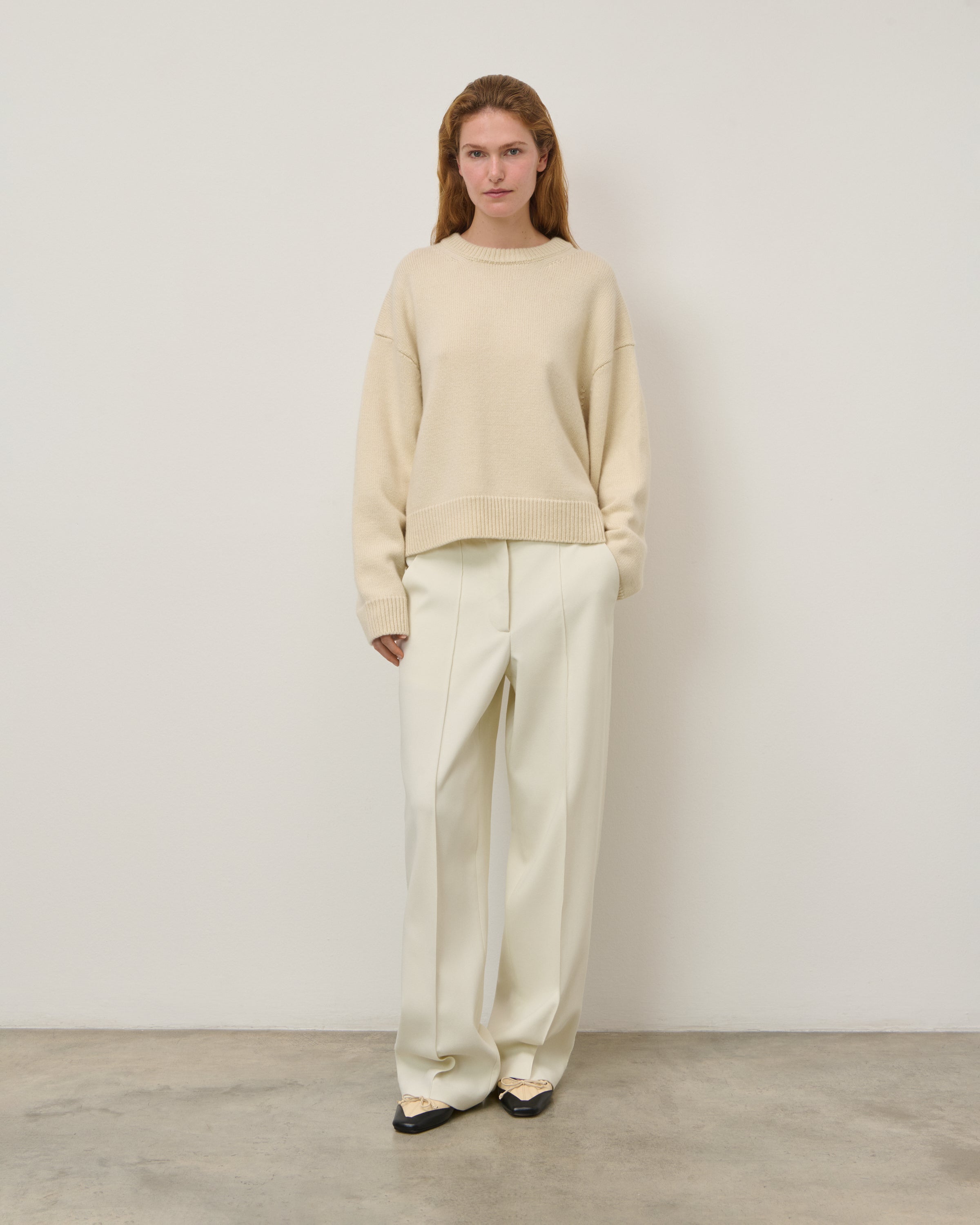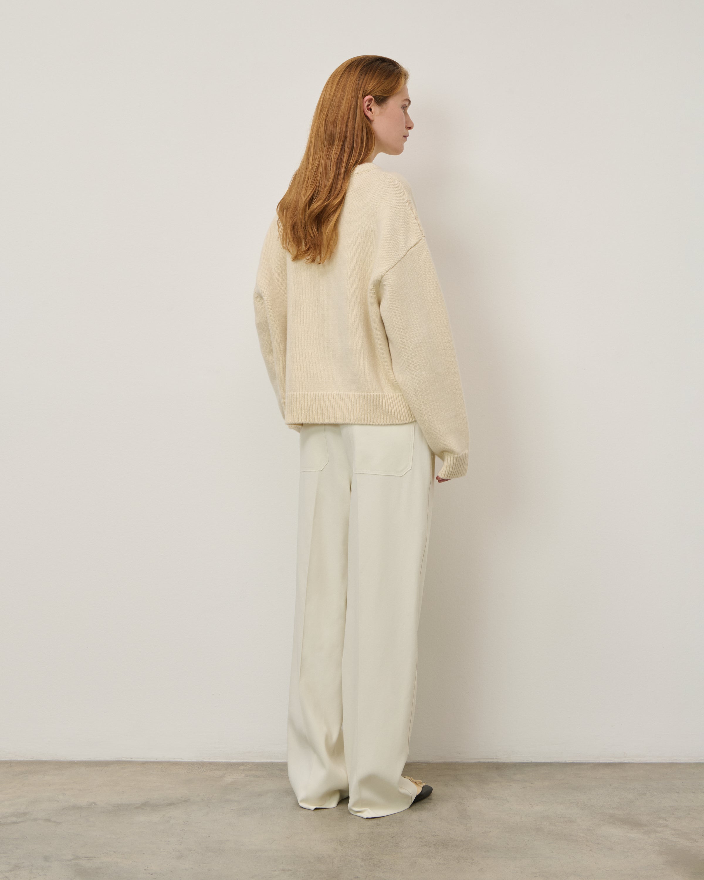 Crewneck sweater in heavyweight cashmere knit with ribbed neckline, cuffs and hem.