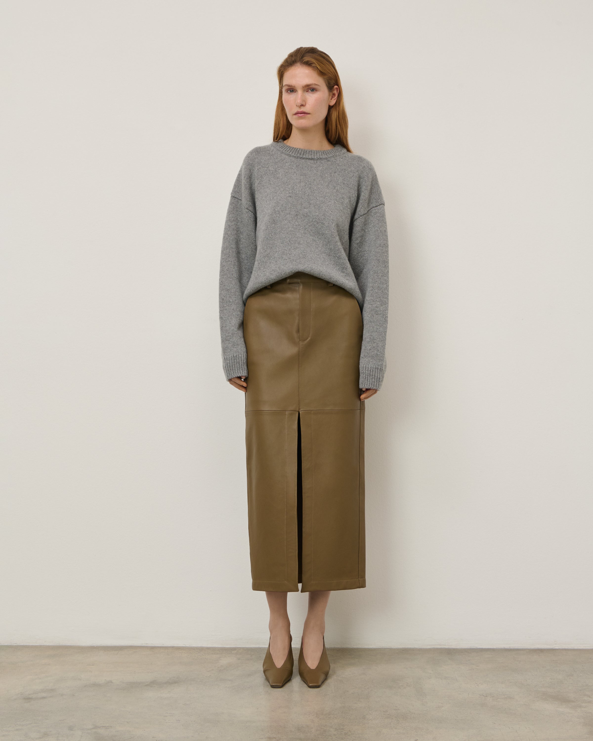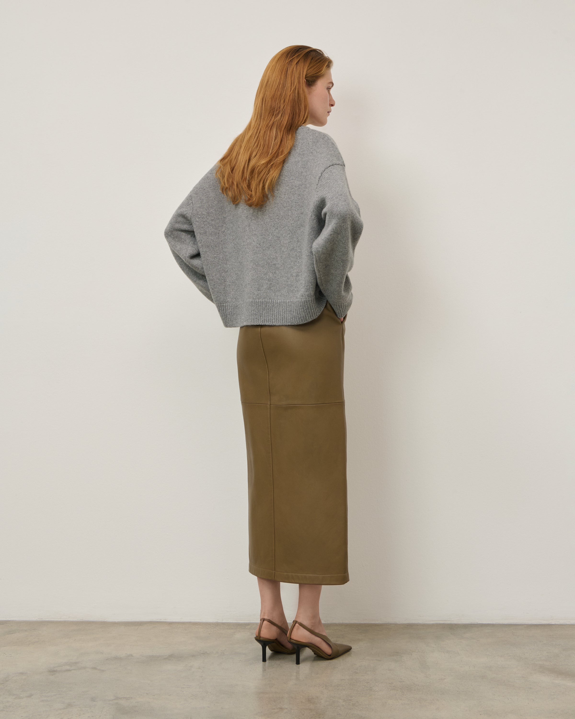Crewneck sweater in heavyweight cashmere knit with ribbed neckline, cuffs and hem.