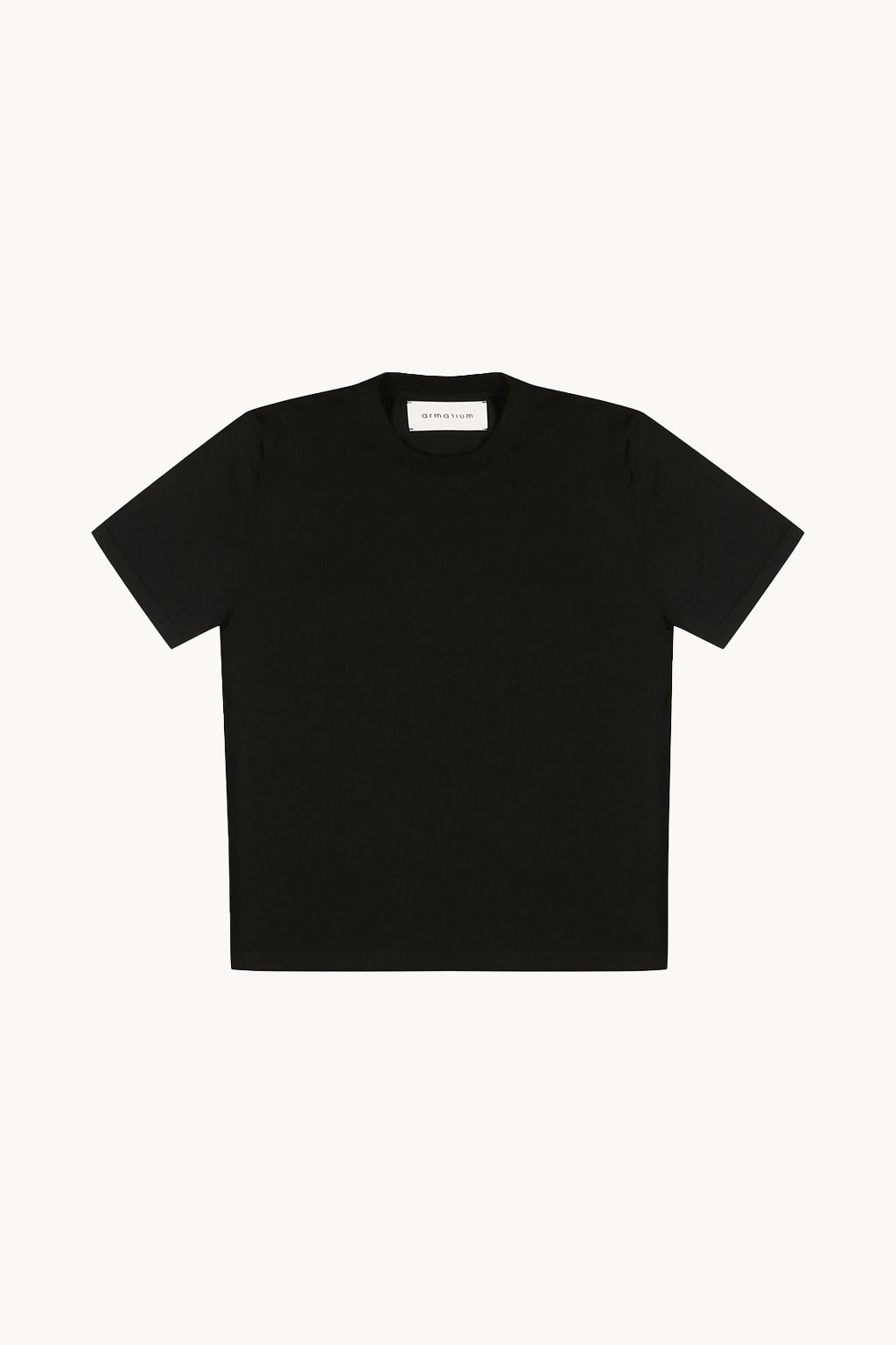 Unisex short-sleeved crewneck top in merino wool knit with relaxed fit and ribbed neck.